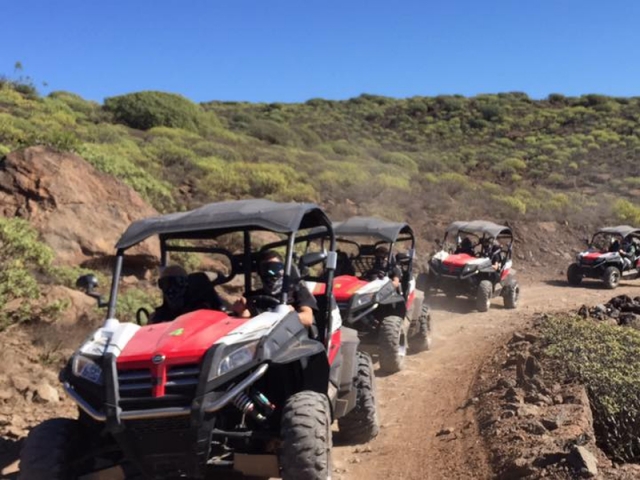 ¿Tiene ganas de una buena aventura motorizada? Venga la paradisíaca localidad de Puerto Rico, en el municipio de Mogán y conoce este idílico entorno de una manera diferente y aventurera, con una ruta en buggy biplaza de 1 hora y 40 minutos de duración. Bordearás zonas costeras, admirarás al Atlántico en todo su esplendor y verás con tus propios ojos lo singulares que son los paisajes canarios, y solo así descubrirás lo variopintos que son sus parajes.