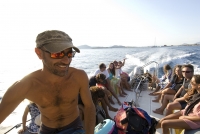 从潜水中心乘坐舒适安全的充气船(长 8.58 米的 BWA 八五十公开)可以在几分钟的航行中到达最远的潜水地点。